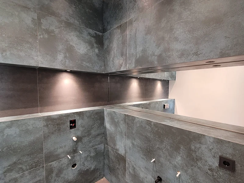 Ohne störende Profile entsteht eine ruhige, harmonische Optik, die das Badezimmer aufgeräumt und hochwertig wirken lässt.